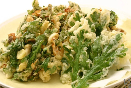 春菊は、特有の香りと苦味が魅力の緑黄色野菜です。生のままでサラダに、さっと加熱して鍋や炒め物、おひたしなど、幅広いメニューに適しています。 特にかき揚げ・天ぷらに春菊が入ると香ばしく、苦味がアクセントになって美味しく召し上がれます。